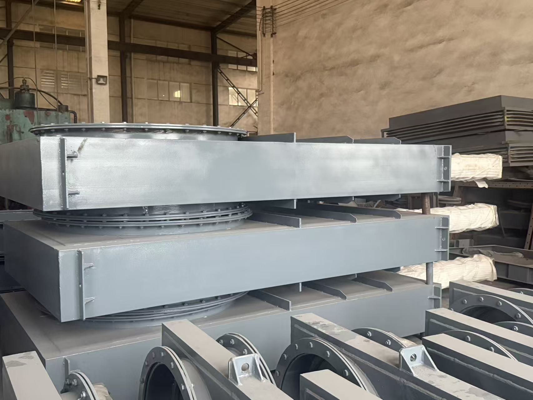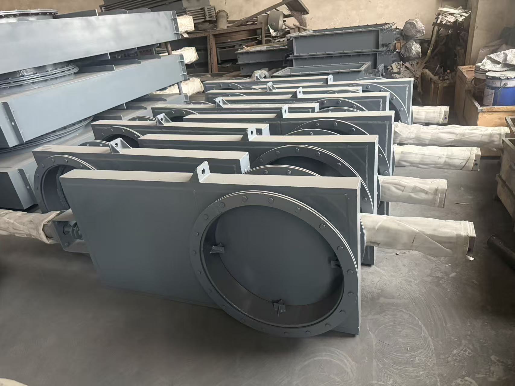 ◦ 你图中这款产品的规格为 750×750mm,属于工业通风用的方形气动风门。